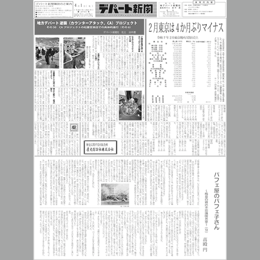 日本百貨店協会は、令和7年2月東京地区百貨店(調査対象12社、22店)の売上高概況を発表した。売上高総額は1287億円余で、前年同月比マイナス2・3%(店舗数調整後/4か月ぶりマイナス)だった。店頭・非店頭の増減は、店頭マイナス3.3%(90.5%)、非店頭8.2%増(9.5%)となった。
