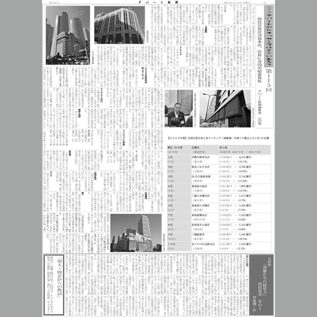 日本百貨店協会は、令和7年3月の全国百貨店(調査対象70社、179店〈2025年2月対比マイナス1社プラス2店〉)の売上高概況を発表した。売上高総額は4953億円余で、前年同月比マイナス2.8%(店舗数調整後/2か月連続マイナス)だった。