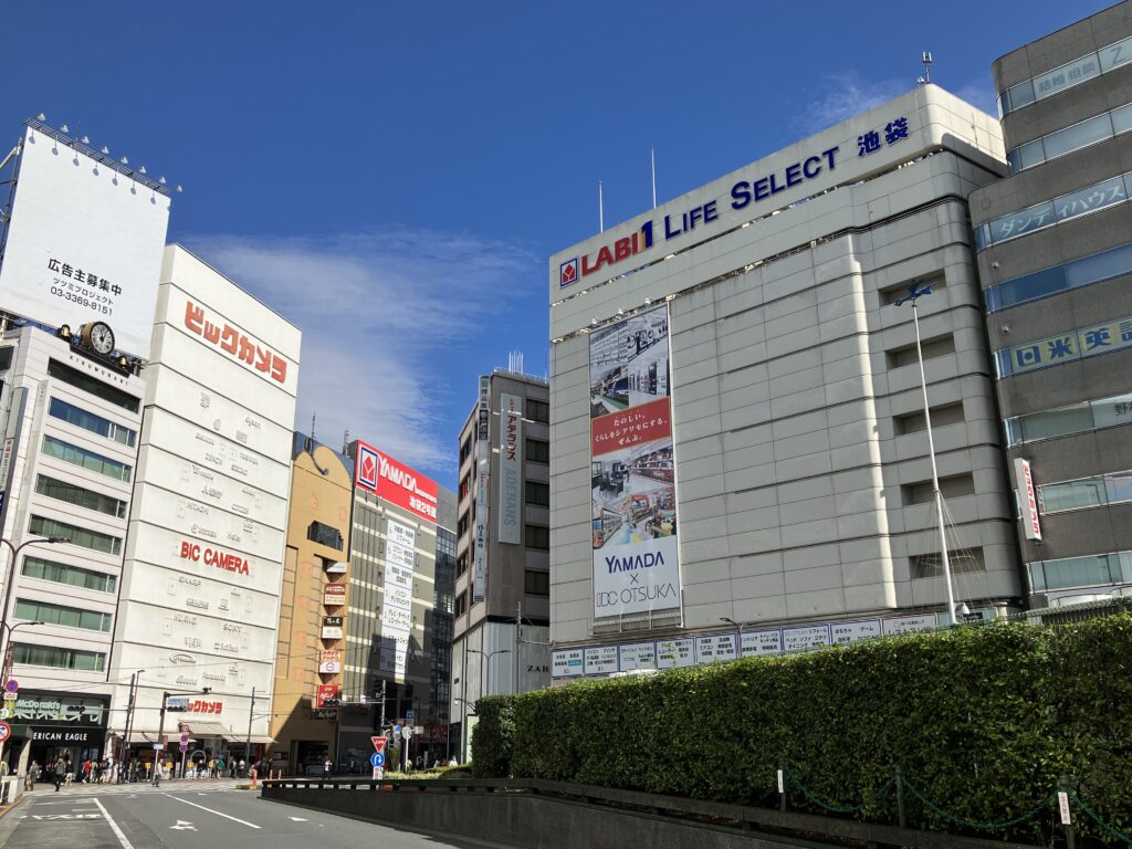 池袋東口には、家電量販店チェーンで唯一売上高1兆円を超える「絶対王者:ヤマダデンキ」と本社を豊島区に構える「ビックカメラ」の旗艦店や系列店がそこかしこにある。西口にもビックカメラのほか、東武百貨店に「ノジマ」が入居する。