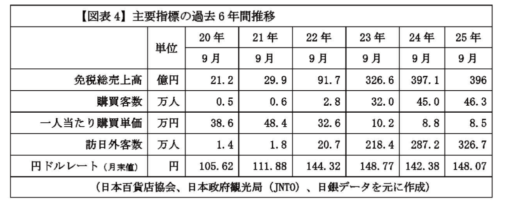 また、訪日客向けの免税制度についても、令和7年度税制改正により26年11月1日から現行の即時免税方式から、リファンド方式(事後還付)に移行される。こうした制度変更は、購買意欲や消費行動に影響を及ぼす可能性があり、インバウンド消費が回復基調にある現在、今後の売上動向への影響についても注視が必要である。